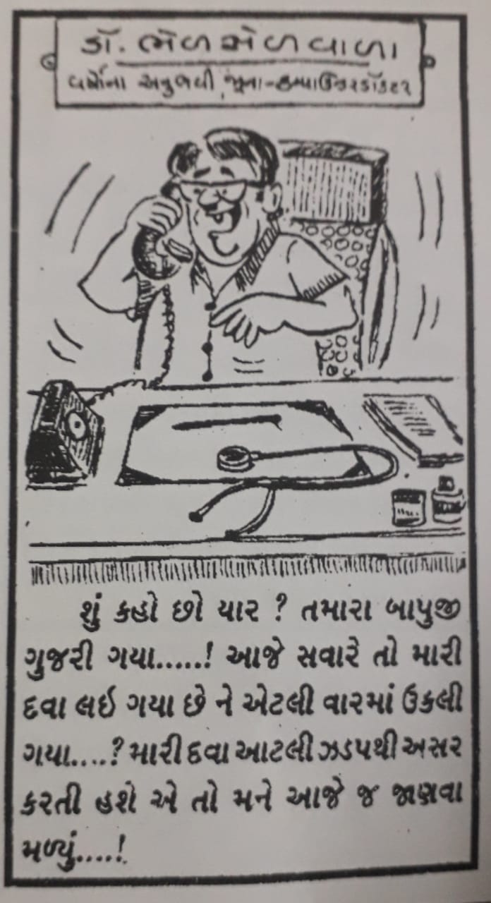આચાર્યની આજકાલથી વિખ્યાત થયેલા હાસ્યલેખક અને સુપ્રસિદ્ધ કાર્ટૂનિસ્ટ ડો. ઈન્દ્રદેવ આચાર્ય નું ૯૨ વર્ષની જૈફ વયે મુંબઈ અંધેરી સ્થિત તેમના નિવાસસ્થાને તારીખ 16 -7- 2020 ને ગુરૂવાર ના રોજ અવસાન થયું છે સુપ્રસિદ્ધ કાર્ટૂનિસ્ટ ડો. ઈન્દ્રદેવ આચાર્ય ના આત્મા ની શાંતિ માટે કલા પ્રતિષ્ઠાન પરિવાર શ્રદ્ધાસુમન અર્પણ કરીને શાંતિ પ્રાર્થના કરે છે🙏🙏🙏🙏🌹🙏🙏 આચાર્યની આજકાલથી વિખ્યાત કાર્ટૂનિસ્ટ હાસ્યલેખક ડો. ઈન્દ્રદેવ આચાર્ય નો જન્મ તારીખ 17 નવેમ્બર 1926માં ઊંઝા ખાતે થયો હતો… અમદાવાદમાં બી.એ .થયા પછી મુંબઈ યુનિવર્સિટીમાંથી અર્થશાસ્ત્રના ગહન વિષયમાં એમણે પી.એચ.ડી.ની પદવી પ્રાપ્ત કરી મલ્ટી નેશનલ ઓઇલ કંપનીમાં આર્થિક સલાહકાર ના ઉચ્ચ સ્થાને બિરાજી દીર્ઘકાલીન યોગદાન આપી જોઈન્ટ ફાઇનાન્સિયલ કંટ્રોલર પદેથી નિવૃત્ત પામ્યા… ચિત્રકળાની કોઈ જ પ્રકારની તાલીમ લીધા વિના અંતઃ પ્રેરણાથી જ તેમનો હાથ વ્યંગચિત્રો તરફ વળ્યો અને કાર્ટૂન ચિત્રો ની શરૂઆત ૧૯૪૭થી કરી ..૧૯૫૯માં જનસત્તામાં શરૂ થયેલી દૈનિક કૉલમ” આચાર્યની આજકાલ”થી લાગલગાટ 40 વર્ષ કરતાં પણ વધુ વર્ષ સુધી દૈનિક પોકેટ કાર્ટુન ની કોલમ ચલાવવી તે એક અજોડ સિદ્ધિ છે… ૧૯૮૪થી ગુજરાત સમાચાર’ની રવિપૂર્તિ માં “ગામ ની ગમ્મત” માં દર સપ્તાહે ચાર કાર્ટુન ઉપરાંત “આનંદ મેળો” વિભાગમાં સંપાદક તરીકે કાર્ટુન સાથેના હળવા લેખો લખી પ્રજાને સિસ્ટ મનોરંજન પૂરું પાડ્યું છે આ સર્જક ના કાર્ટુનો વિશ્વભરના કાર્ટુન પ્રદર્શનોમાં પ્રદર્શિત થયા છે.. એ સંસ્થાઓ દ્વારા પ્રકાશિત થતા “કાર્ટુન સંપુટ”માં સ્થાન પામ્યા છે 50,000 થી પણ વધારે કાર્ટૂન દોરી વિશ્વ વિક્રમ સ્થાપિત કરનાર આ કલાકારને વિવિધ સન્માનો પ્રાપ્ત થયા છે ૧૯૯૨માં નવી દિલ્હીની ઓલ ઇન્ડિયા ફાઇન આર્ટસ એન્ડ ક્રાફ્ટ સોસાયટી તરફથી રાષ્ટ્રપતિશ્રીના હસ્તે “વેટરન આર્ટિસ્ટ એવોર્ડ” થી મળેલું સન્માન વિશેષ છે ..1997માં ગુજરાતી પત્રકારત્વમાં અમૂલ્ય યોગદાન આપનારાઓને ગુજરાત સરકાર દ્વારા સન્માનિત કરાયા તેમાં ડો. ઈન્દ્રદેવ આચાર્ય ને કાર્ટૂન કલા ક્ષેત્રના પ્રદાન બદલ સન્માનિત કરવામાં આવ્યા હતા.. તેમના કાર્ટુન સંગ્રહો પ્રકાશિત થયા છે ૧૯૬૬માં કેનેડા દ્વારા પ્રકાશિત “વિશ્વ કાર્ટુન” સંગ્રહમાં ભારતના પાંચ ચિત્રકારોના છઠ્ઠા ચિત્રોમાં ગુજરાતના બંસી વર્મા “ચકોર” અને ડો. ઈન્દ્રદેવ આચાર્ય ના કાર્ટૂન નો સમાવેશ કરાયો છે તેમના બે કાર્ટૂન સંગ્રહ “હાસ્ય ટોનિક” તથા “આચાર્યના વ્યંગ ચિત્રો “નામથી નવભારત સાહિત્ય મંદિર દ્વારા પ્રગટ કરાયા છે “હાસ્ય ટોનિક “માં ૨૦૦ જેટલા માંદા અને સાજા એવા સૌને ગમ્મત કરાવે એવા વ્યંગચિત્રો સંગ્રાહાયા છે થોડા દિવસો પહેલા જ જામનગરના એ.એચ. જામી સાહેબ ના દુઃખદ અવસાને હજી કળ વળવા દીધી નથી બીજા ત્યાં બીજ