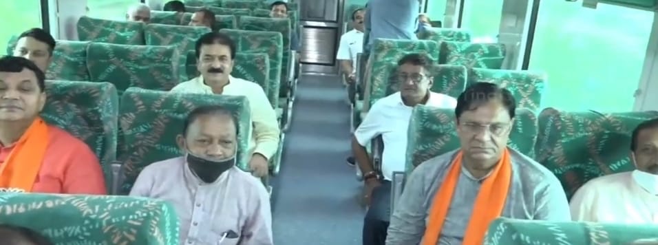 પહેલી સપ્ટેમ્બરેઆજે સવારે 7.30 કલાકે પ્રદેશ ભાજપનાં નેતાઓ કાલુપુર રેલવે સ્ટેશન થી કેવડિયા ટ્રેન મારફતે કેવડિયા જવા રવાના થયા હતા . ટ્રેન મા પ્રદેશ ભાજપ ના નેતાઓ ને ટેબ્લેટ વિતરણ કરવામાં આવ્યુ હતું.અને નેતાઓ નમો એપ આ ટેબ્લેટ મા ડાઉનલોડ કરશે. 1 લીએ બપોર બાદ તમામ લોકો કેવડીયા કોલોની પહોંચ્યાં હતા.જેમના રોકાણ માટે ટેંટ સીટી વન, ટેંટ સીટી ટુ અને કેવડીયાની આસપાસની તમામ મોટી હોટલો બુક કરાવી દેવાઈ છે.