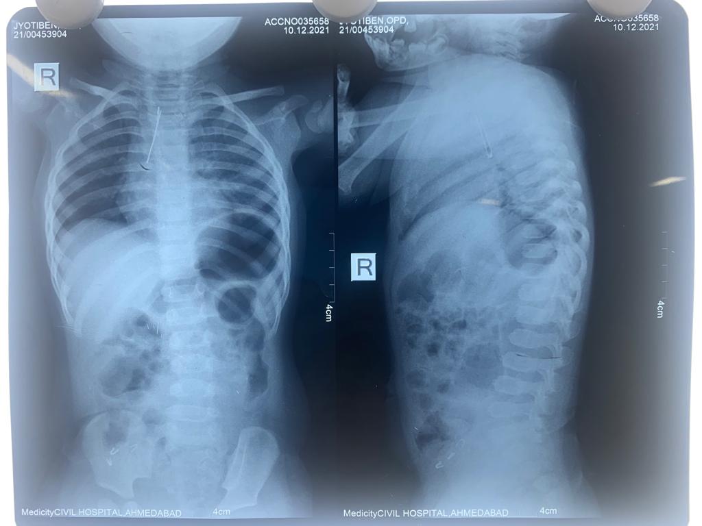 અમદાવાદ: ૨ વર્ષની બાળકી રમકડા સાથે રમતી વખતે LED બલ્બ ગળી ગઇ. જે શ્વાસનળી સુધી પહોંચ્યો. LED બલ્બના ઇલેક્ટ્રોડ્સના બંને છેડામાંથી એક છેડો જમણી બાજુના ફેફસામાં જ્યારે અન્ય છેડો શ્વાસનળીમાં ફસાઇ ગયો.ભારે જહેમત ઉપાડીને સિવિલ હોસ્પિટલના નિષ્ણાંત તબીબોની ટીમે સર્જરી હાથ ધરીને બલ્બ સફળતાપૂર્વક દૂર કર્યો. ૧૦ મી ડિસેમ્બરે બે બાળકો બાહ્ય પદાર્થ ગળી જવાની ફરિયાદ અને દુખાવા સાથે અમદાવાદ સિવિલ હોસ્પિટલમાં સારવાર અર્થે આવી પહોચ્યા. ૨ વર્ષની જ્યોતિ જ્યારે રમકડા થી રમી રહી હતી ત્યારે રમત રમતમાં રમકડામાં લગાવેલ એલ.ઇ.ડી. બલ્બ ગળી ગઇ. તેની માતા રાજકુમારીબેનને આ બાબતની જાણ થતા તેઓ સત્વરે સધન સારવાર અર્થે સિવિલ હોસ્પિટલની ૧૨૦૦ બેડ હોસ્પિટલમાં આવી પહોંચ્યા. હોસ્પિટલમાં એક્સ-રે અને સી.ટી. સ્કેન કરાવવામાં આવ્યા જેમાં આ એલ.ઇ.ડી. બલ્બ શ્વાસનળીમાં ફસાઇ ગયેલ હોવાનું નિદાન થયું.આવા જ બીજા એક કિસ્સામાં મહેસાણાના હનુભાઇ વણઝારાની બે વર્ષની દિકરી હિનાને ત્રણ દિવસથી શ્વાસ લેવામાં તકલીફ પડી રહી હતી. સ્થાનિક હોસ્પિટલમાં સી.ટી. સ્કેન કરાવતા ખબર પડી કે સીંગનો દાણો શ્વાસનળીમાં ફસાઇ ગયો છે. જેને અત્યંત જટીલ અને નિષ્ણાંત તબીબો જ સર્જરી દ્વારા દૂર કરી શકશે. જેના સારવાર અર્થે હીનાના પિતાશ્રી બાળકીને સિવિલ હોસ્પિટલ લઇ આવ્યા.જ્યાં ડૉ. મહેશ વાધેલા અને એનેસ્થેસિયા વિભાગના ડૉ. કિરન પટેલે આ જટીલ સર્જરી પાર પાડવાની જહેમત ઉપાડીને તેને સફળતાપૂર્વક પાર પાડી. જ્યારે ૨ વર્ષીય જ્યોતિની સમસ્યા અત્યંત જટીલ હોવાથી સિવિલ હોસ્પિટલના સુપ્રીટેન્ડેન્ટ અને બાળરોગ સર્જરી વિભાગના વડા ડૉ.રાકેશ જોષી અને તેમની ટીમે એનેસ્થેસિયા વિભાગના ડૉ. સીમા ગાંધી ના સહયોગથી સમગ્ર સર્જરી હાથ ધરીને સફળતાપૂર્વક પાર પાડી.ડૉ. રાકેશ જોષી દરેક માતા-પિતાને પાંચ વર્ષથી નાના બાળકોને રમકડા, સંવેદનશીલ પદાર્થો થી દૂર રાખવા અનુરોધ કરે છે. આવા પદાર્થો બાળક જ્યારે ગળી જાય ત્યારે ઉપરોક્ત કિસ્સા મુજબ ઘણી વખત શ્વાસનળીમાં પ્રવેશે છે. જેનાથી બાળક ગંભીર મુશકેલીમાં મુકાઇ શકે છે. અગાઉ એસિડ અને અન્ય જવલંત પદાર્થો ભુલથી ગળી જવાના કિસ્સા પણ સામે આવતા હતા. આ તમામ પ્રકારની તકલીફોથી બચવા માટે સાવચેતી એ જ સલામતીને ધ્યાને રાખીને પોતાના બાળકની સારસંભાળ રાખવાની ડૉ. જોષી સલાહ આપે છે.