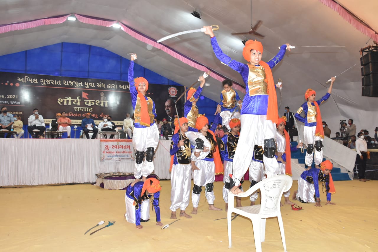 સત્ય, ન્યાય અને ધર્મ માટે લડવાની આપણી ઉજળી પરંપરા રહી છે તેમ જણાવતાં મુખ્યમંત્રીશ્રીએ જામ રાવલ, જામ સત્તાજી,જામ દિગ્વિજયસિંહજી, જામ અબડા અળભંગ, જામ ઉન્નડ વગેરે શુરાવીરોને યાદ કરી તેમની શૌર્યતાને બિરદાવી આદરાંજલી અર્પણ કરી હતી.ભારતના ભૂતપૂર્વ વડાપ્રધાન સ્વર્ગસ્થ અટલ બિહારી વાજપેયજીની સ્મૃતિમાં તા.૨૫ થી ૩૧મી ડિસેમ્બર સુધી સુસાશન સપ્તાહ ઉજવાઇ રહ્યુ છે ત્યારે ભારત માં ના સપૂત એવા વાજપેયીજીના શૌર્યને પણ મુખ્યમંત્રીશ્રીએ યાદ કર્યું હતું.વીર યોદ્ધાઓના શૌર્યથી દેશની રક્ષા થાય છે અને એટલે જ દેશમાં સુસાશન, શાંતિ અને વિકાસ સંભવ બને છે. ભારતમાતાના આવા વીર, સાહસી અને પરાક્રમી સપૂતોની કથાઓનું વાંચન, ગાયન અને રસપાન થતું જ રહેવું જોઇએ તેમ મુખ્યમંત્રીશ્રીએ ઉમેર્યું હતું.આ પ્રસંગે પ્રદેશ યુવા ભાજપ મહામંત્રી શ્રી પ્રદીપસિંહ વાઘેલા, ડો.જ્યેન્દ્રસિંહ જાડેજા, વગેરેએ પ્રાસંગિક ઉદ્ધબોધન કર્યું હતું તેમજ મુખ્યમંત્રીશ્રીને આવકારી શૌર્યકથા સપ્તાહની રૂપ રેખા રજૂ કરી હતી.આ પ્રસંગે મુખ્યમંત્રીશ્રીએ ડો.જયેંદ્રસિંહ જાડેજા લિખિત ‘આશરા ધર્મનો અજોડ ઇતિહાસ’ પુસ્તકનું વિમોચન કર્યું હતું.તેમજ તેમના આ કાર્યને બિરદાવી અભિનંદન પાઠવ્યા હતાં.આ પ્રસંગે રાજ્યમંત્રી શ્રી કીર્તિસિંહ વાઘેલા, પૂર્વ મંત્રી અને ધારાસભ્ય શ્રી ધર્મેન્દ્રસિંહ જાડેજા, જિલ્લા પંચાયત પ્રમુખ શ્રી ધરમશીભાઈ ચનીયારા, મેયર શ્રીમતી બીનાબેન કોઠારી, શ્રી પી.ટી.જાડેજા, જિલ્લા કલેક્ટર શ્રી ડો.સૌરભ પારઘી, જિલ્લા વિકાસ અધિકારી શ્રી મિહિર પટેલ, શહેર ભાજપ પ્રમુખ શ્રી વિમલ કગથરા, શ્રી રમેશભાઈ મુંગરા, શ્રીમતી જયશ્રીબહેન પરમાર, શ્રી રાજભા જાડેજા, દીપકસિંહ ઝાલા, પથુભા જાડેજા, પ્રવિણસિંહ જાડેજા, પ્રદ્યુમનસિંહ જાડેજા સહિતના આગેવાનો ઉપસ્થિત રહ્યા હતા.કાર્યક્રમનું સંચાલન પ્રવિણસિંહ જાડેજા તથા ગાજેન્દ્રસિંહ જાડેજાએ કર્યું હતું.