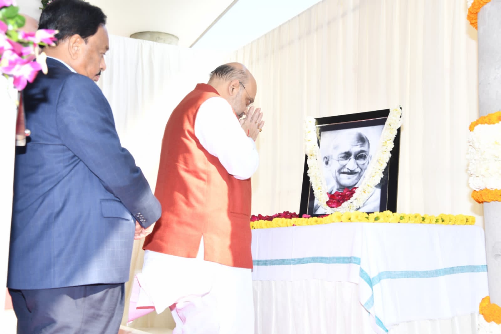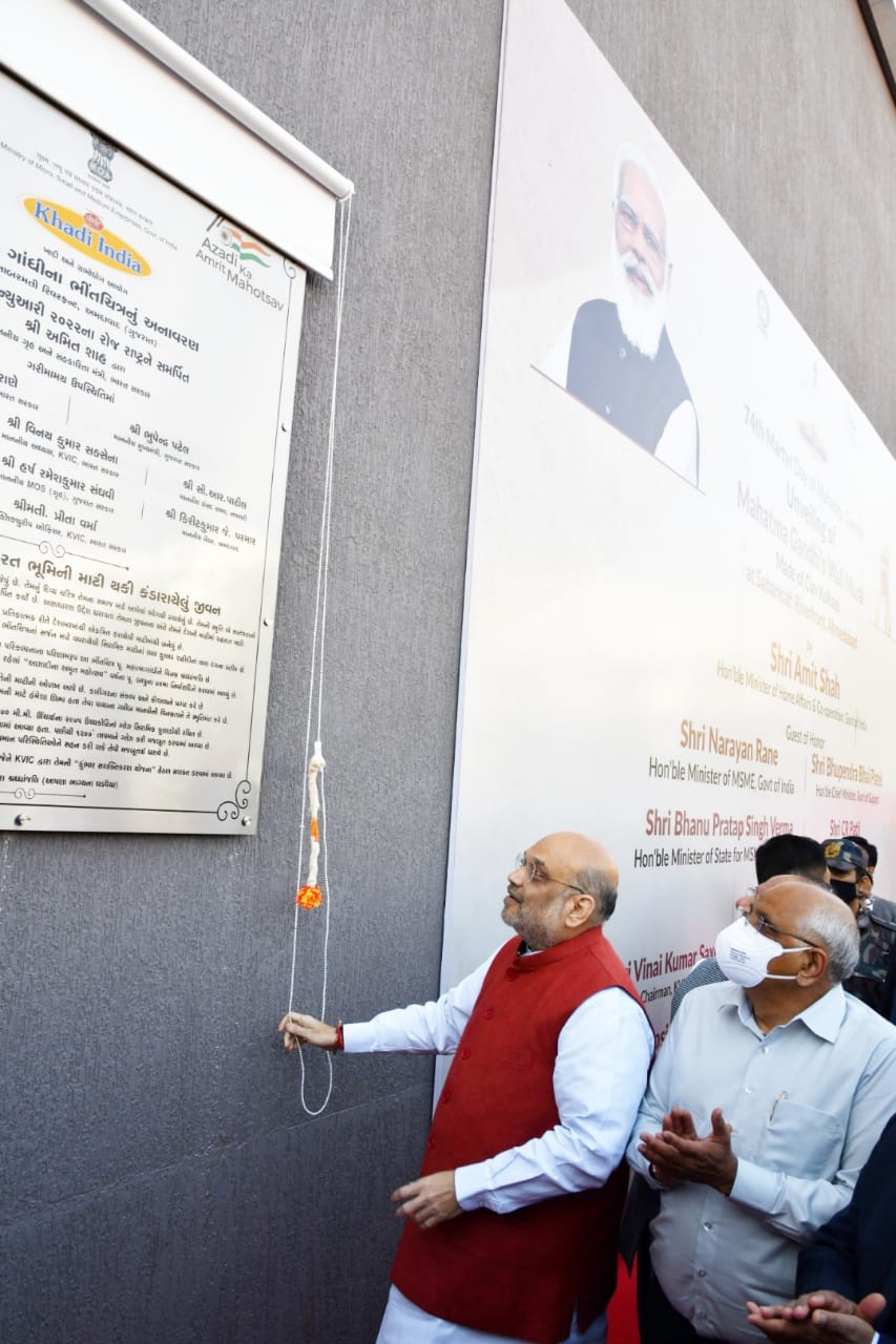 કેન્દ્રીય ગૃહમંત્રી શ્રી અમિતભાઈ શાહે અમદાવાદના સાબરમતી રિવરફ્રંટ હાઉસ ખાતે માટીની કુલડીમાંથી બનાવેલા મહાત્મા ગાંધીના ભીંતચિત્રનું અનાવરણ કર્યું******સાદગી,સ્વદેશી-સ્વભાષા-સત્યાગ્રહ અને સાધનશુદ્ધિના ગાંધી-વિચારોભારતના પુન: નિર્માણ માટે મહત્વપૂર્ણ – કેન્દ્રીય ગૃહ-સહકારમંત્રીશ્રી****** દુનિયાના સૌથી મોટા બ્રિટિશ સામ્રાજ્યની ગુલામીમાંથી દેશને મુક્ત કરવાનું ગાંધી- સંકલ્પબળ આપણા સૌ માટે પ્રેરણાસ્ત્રોત – શ્રી અમિતભાઈ શાહ****** -: શ્રી અમિતભાઈ શાહ, કેન્દ્રીય ગૃહમંત્રી -: ખાદીનો ઉપયોગ વધારીએ,ગરીબોને ગૌરવભેર જીવન જીવવાનો અવસર આપીએ ખાદી વિચાર વર્તમાન સમયમાં પણ એટલો જ પ્રાસંગિક જો સ્વભાષા સાથે નાતો તૂટશે, તો સંસ્કૃતિ સાથેનો નાતો પણ તૂટશે****ગાંધીજીનું ખેતી – ખાદી થકી સ્વરાજનું સ્વપ્ન આજે પ્રધાનમંત્રી નરેન્દ્રભાઇ મોદી સાકાર કરી રહ્યા છે :- મુખ્યમંત્રી શ્રી ભૂપેન્દ્રભાઈ પટેલ****શ્રી ભૂપેન્દ્રભાઈ પટેલ સાબરમતિ નદીના આજ તટેથી પ્રધાનમંત્રી શ્રી નરેન્દ્રભાઇ મોદીએ આઝાદીનો અમૃત મહોત્સવનો પ્રારંભ કરાવ્યો છે દેશના પ્રથમ હેરિટજે શહેર અમદાવાદની સાબરમતી તટેથી મહાત્માંએ ખાદીની પ્રેરણા આપી હતી*****કેન્દ્રીય ગૃહ અને સહકારીતા મંત્રી શ્રી અમિત ભાઈ શાહે શહિદ સ્મૃતિ અને ગાંધી નિવાર્ણ દિન નિમિત્તે અમદાવાદના સાબરમતી રિવરફ્રંટ હાઉસ ખાતે રાષ્ટ્રપિતા મહાત્મા ગાંધીના ભીંતચિત્રના અનાવરણ પ્રસંગે જણાવ્યું હતું કે, રાષ્ટ્રપિતા મહાત્મા ગાંધીના સાદગી, સ્વદેશી, સ્વભાષા, સત્યાગ્રહ અને સાધનશુદ્ધિ જેવા વિચારો ભારતના પુન: નિર્માણ માટે આજે પણ એટલા જ મહત્વના અને પ્રસ્તુત છે*.
