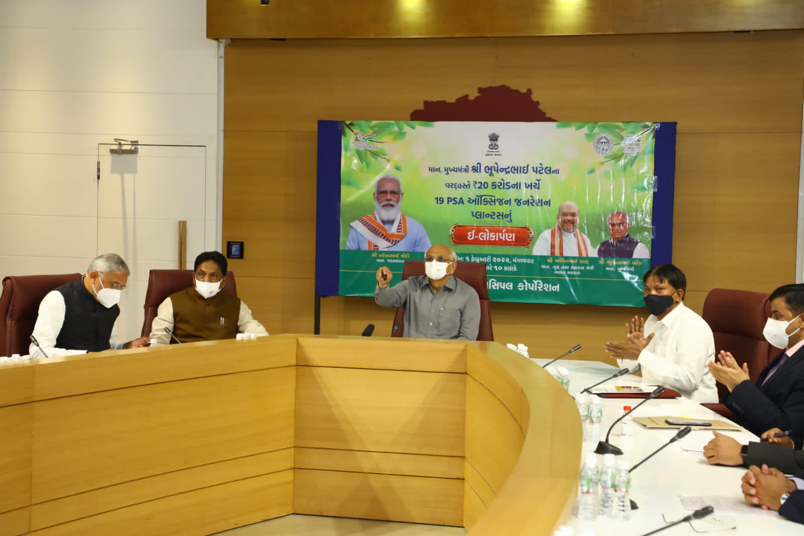 અત્યાર સુધીમાં ગુજરાતમાં ૯ કરોડ,૭૬ લાખ,૮૬ હજાર, ૫૩૯ રસીના ડોઝ નાગરિકોને આપવામાં આવ્યા છે. આમ છતાં રાજ્ય સરકારે આગોતરા આયોજનના ભાગરૂપે PSA પ્લાન્ટની સુવિધા વ્યાપક બનાવી છે. દુનિયાના વિકસિત અને આધુનિક શહેરોમાં જેની ગણના થાય છે તેવા અમદાવાદના નગરજનોની આરોગ્યની સુખાકારીમાં વધારો કરવા માટે એકસાથે 19 ઓક્સિજન જનરલ પ્લાન્ટ અમદાવાદના નગરજનોને મળી રહ્યા છે. અમદાવાદ મહાનગરપાલિકા દ્વારા રૂપિયા ૨૦ કરોડના ખર્ચે તૈયાર કરેલા આ પ્લાન્ટ અમદાવાદની ત્રણ મોટી જનરલ હોસ્પિટલ, ૯ કોમ્યુનિટી હેલ્થ સેન્ટર અને એક કોવિડ કેર સેન્ટર ખાતે લગાવવામાં આવ્યા છે.૫૦૦૦ થી ૨૦૦૦ લિટરની કેપેસીટી ધરાવતા આ પ્લાન્ટ જરૂરિયાતના સમયે દર્દીઓની ઓક્સિજનની માંગને પૂરી પાડશે. કોરોનાની બીજી લહેર દરમિયાન મેડિકલ ઓક્સિજનની માંગ ખૂબ વધી હતી અને નવા ઓક્સિજન પ્લાન્ટની જરૂરિયાત ઊભી થઈ હતી તેમ જણાવતા મુખ્યમંત્રીશ્રીએ વધુમાં જણાવ્યું કે સદભાગ્યે ત્રીજી લહેર દરમિયાન આવી કોઈ સ્થિતિનું નિર્માણ થવા પામ્યું નથી આની પાછળનું મુખ્ય કારણ ગુજરાતમાં ચાલુ રહેલું વ્યાપક રસીકરણ અભિયાન છે, અને જેના પરિણામે રાજ્યમાં આજે દર્દીઓનું હોસ્પિટલાઇઝેશન ઓછું થયું અને ઓક્સિજનની જરૂર પણ ઓછી પડી છે, અત્યારે ત્રીજી લહેરમાં કોરોનાના એવા દર્દી અસરગ્રસ્ત થયા હતા જેમણે કોરોનાની રસી લીધી નથી. રસી ન લીધી હોય તો કોરોના સામે શરીરની રોગપ્રતિકારક શક્તિ વિકસે નહીં તે સ્વાભાવિક છે.