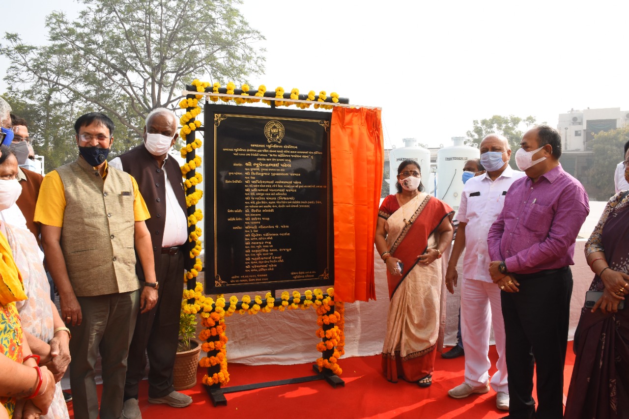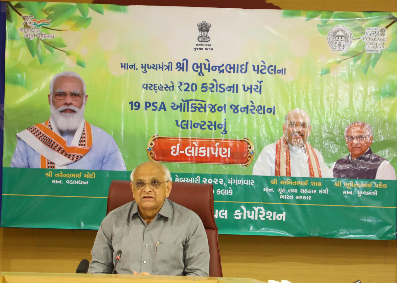 તથા પી.એમ.કેર્સ ફંડ અંતર્ગત ગુજરાત માટે ૮૯.૯૧ મેટ્રિક ટનની ક્ષમતા ધરાવતા 59 પ્લાન્ટ કાર્યરત થઇ ચુકયા છે. જેમાં તમામ સાંસદશ્રીઓ અને ધારાસભ્યશ્રીઓના ફંડમાંથી પણ 55 psa પ્લાન્ટ રાજ્યોની આરોગ્ય સંસ્થાઓને મળ્યા છે. આ પ્લાન્ટની ઓક્સિજન ઉત્પાદન ક્ષમતા લગભગ ૩૧.૩૯ મેટ્રિક ટન છે. મુખ્યમંત્રીશ્રી ભુપેન્દ્રભાઈ પટેલે જણાવ્યું હતું કે આઝાદીના અમૃત મહોત્સવ વર્ષે મોદીજીએ આત્મનિર્ભર ભારતનો સંકલ્પ આપ્યો છે, આપણે આત્મનિર્ભર ગુજરાતથી આત્મનિર્ભર ભારત બનાવવાનું છે. મેડિકલ ઓક્સિજનના જનરેશન, સ્ટોરેજ અને સપ્લાયની બાબતમાં ગુજરાતે આત્મનિર્ભરતા કેળવી છે.વડાપ્રધાન શ્રી નરેન્દ્રભાઇ મોદીએ દેશના હેલ્થ ઇન્ફ્રાસ્ટ્રક્ચરને વધુ આધુનિક બનાવવા માટે અનેક પગલાં લીધા છે. જેમા સ્વદેશી માસ વેકસિનેશન, દવાઓ, ઓક્સિજનનું ઉત્પાદન અને રાજ્યોને પણ આરોગ્ય રક્ષા કવચ ઉપાડવા માટે સતત માર્ગદર્શન આપ્યું છે. વર્તમાન કોરોના મહામારીથી દેશ અને દુનિયાને ઓકસિજનનું મહત્વ સમજાયું છે. ગ્રીન કવર વધારી કુદરતી પ્રાણવાયુ માટેની સમજણ વધી છે. હવા, પાણી, જમીનના પ્રદૂષણ અને ક્લાઈમેટ ચેન્જની અસર નિવારવા વડાપ્રધાન શ્રી નરેન્દ્રભાઈ મોદીએ દેશને clean green નો નવો રાહ ચિંધ્યો છે તેમણે કંડારેલી કેડી પર ચાલીને ગુજરાતમાં PSA ઓક્સિજન જનરેશન પ્લાન્ટની સ્થાપના, રસીકરણ અભિયાન,ગ્રીન એનર્જીના વપરાશક્ષેત્રે દેશમા અત્યારે અગ્રેસર છે. રાજયના તમામ નાગરિકોની તંદુરસ્તી જળવાય એવી સ્થિતિનું નિર્માણ આપણે સૌએ કરવાનું છે તેમ મુખ્યમંત્રીશ્રીએ ભાર પૂર્વક જણાવ્યું હતું.આ પ્રસંગે અમદાવાદ મહાનગરપાલિકાના મેયરશ્રી કિરીટકુમાર પરમારે રૂ,૨૦ કરોડના ખર્ચે તૈયાર થયેલ ૧૯ PSA ઓક્સિજન જનરેશન પ્લાન્ટની માહિતી આપી હતી. ઓક્સિજન પ્લાન્ટ કાર્યરત થવાથી હોસ્પિટલની 1393 પથારી ઉપર ઓક્સિજનની સુવિધા મળવાપાત્ર થશે અને લીકવીડ ઓક્સીજનના સપ્લાયનું ભારણ ઘટશે. જેમાં SVP માં ૬ પ્લાન્ટ, એલ.જી હોસ્પિટલમાં ૧, શારદાબેન હોસ્પિટલમાં૧, સમરસ હોસ્પિટલમાં ૨, ૯ કોમ્યુનિટી હેલ્થ સેન્ટર ખાતે ૯ PSA ઓક્સિજન જનરેશન પ્લાન્ટ કાર્યરત કરવામાં આવ્યા છે. આ પ્રસંગે અમદાવાદ શહેર મેયર શ્રી કિરીટભાઈ પરમાર, ડેપ્યુટી મેયર શ્રી હિતેશભાઈ બારોટ, અમદાવાદ મ્યુનિસિપલ કમિશનર શ્રી લોચન શહેરા વર્ચ્યુઅલ અને ધારાસભ્યશ્રીઓ, સાંસદશ્રીઓ લોકાર્પણ સ્થળે ઉપસ્થિત રહ્યા હતા.