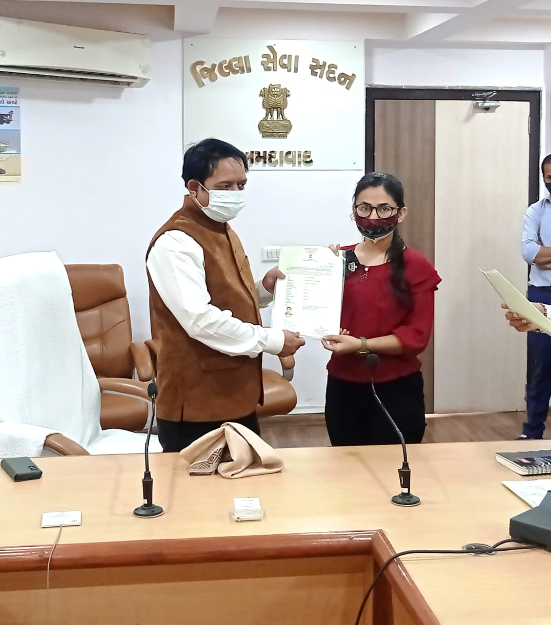 અમદાવાદ: શનિવારના રોજ અમદાવાદ જિલ્લા કલેક્ટર કચેરી ખાતે 41 પાકિસ્તાની હિંદુઓને નાગરિકતા પત્ર એનાયત કરવામાં આવ્યા હતા. અમદાવાદ જિલ્લા કલેક્ટર શ્રી સંદિપ સાગલે અને અધિક નિવાસી કલેક્ટર શ્રી પરિમલ પંડ્યાની ઉપસ્થિતિમાં આયોજિત કાર્યક્રમમાં જ્યારે નાગરિકતા પત્ર એનાયત કરવામા આવ્યા ત્યારે જિલ્લા કલેક્ટર કચેરીના કોન્ફરન્સ રુમમાં ભાવસભર દ્રશ્યો સર્જાયા હતા. અમદાવાદ જિલ્લા કલેક્ટરશ્રી સંદિપ સાગલેએ જ્યારે બુઝુર્ગ બિરમાબાઈને નાગરિકતા પત્ર એનાયત કર્યું, ત્યારે તેમની આંખોમાં અનોખી ચમક જોવા મળી. બિરમાબાઈએ જિલ્લા કલેક્ટરશ્રીને વંદન કર્યા અને બોલ્યાં, “અપને મુલ્ક મેં આને સે બહોત ખુશી હો રહી હૈ.” બિરમાબાઈ આટલું બોલ્યાં ત્યારે કોન્ફરન્સ રુમમાં હાજર અબાલવૃદ્ધ સૌ કોઈએ ‘’ ભારત માતા જિંદાબાદ’’થી નારાથી વાતાવરણને ઉર્જામય બનાવી દીધું હતું. આ પ્રસંગે કોન્ફરન્સ રુમમાં ઉપસ્થિતો રહેલા લાભાર્થીઓના ચહેરા પર ભારતીય નાગરિકતા મળ્યાનો સંતોષ વર્તાતો હતો.
