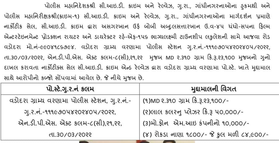 ભારત વડોદરા ગ્રામ્યમાંથી 2.310 ગ્રામ એમડી ડ્રગ્સ ઝડપી પાડતી ગાંધીનગર સીઆઇડી ક્રાઇમ નારકોટિક્સ સેલ તેમજ રેલવે પોલીસ. Krunal SoniApril 1, 2022April 1, 2022 વડોદરા ગ્રામ્યમાંથી 2.310 ગ્રામ એમડી ડ્રગ્સ ઝડપી પાડતી ગાંધીનગર સીઆઇડી ક્રાઇમ નારકોટિક્સ સેલ તેમજ રેલવે પોલીસ.