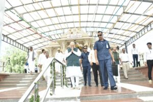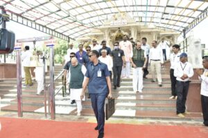 બનાસકાંઠા: નડાબેટ ખાતે ‘સીમા દર્શન પ્રોજેક્ટ’ના ઉદઘાટન પૂર્વે કેન્દ્રિય ગૃહ મંત્રીશ્રી અમિતભાઇ શાહે નડેશ્વરી માતાના દર્શન કરી ધન્યતા અનુભવી હતી. ચૈત્રી નવરાત્રી અંતિમ દિવસ રામનવમીના પાવન અવસરે નડેશ્વરી માતાજીના દર્શન કરી કેન્દ્રિય ગૃહ મંત્રીશ્રીએ દેશની સુરક્ષા અને અખંડિતતા માટે પ્રાર્થના કરી હતી.