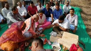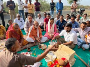 સૂર્યમુખી દ્વાર નું ખાતમુહૂર્ત ભક્તિભાવ રીતે કરવામાં આવ્યું અને સરપંચ શ્રી સંજય ભાઈ લાખાણી યે કિશોર ભાઈ કાછડીયા તેમજ તેમના પરિવાર નો આભાર વ્યક્ત કર્યો હતો અને શ્રી ગોબર ભગત ના આશીર્વાદ લીધા હતા.