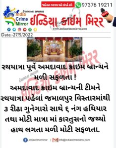 ગુજરાતસમાચાર Krunal SoniMay 27, 2022 બેકિંગ ન્યુઝ…. રથયાત્રા પૂર્વ અમદાવાદ ક્રાઈમ બ્રાન્ચ ને મળી સફળતા..