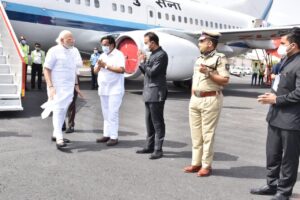*ગુજરાતની એક દિવસીય મુલાકાતે આવેલા વડાપ્રધાનશ્રી નરેન્દ્ર ભાઇ મોદી શનિવારે સવારે રાજકોટ એરપોર્ટ આવી પહોંચ્યા ત્યારે મુખ્યમંત્રીશ્રી ભૂપેન્દ્ર પટેલ,નવસારી ના સાંસદ અને પ્રદેશ ભાજપા અધ્યક્ષશ્રી સી. આર.પાટિલ,મુખ્ય સચિવ શ્રી પંકજ કુમાર,રાજકોટ પોલીસ કમિશનર રાજુ ભાર્ગવ અને અધિકારીઓએ વડાપ્રધાનશ્રી નું સ્વાગત કર્યું હતું*