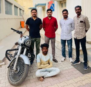 ગઇકાલ તા.૨૬/૦૫/૨૦૨૨નાં રોજ એલ.સી.બી. સ્ટાફનાં માણસો ભાવનગર શહેર વિસ્તારમાં ચોરીનાં અનડિટેકટ ગુન્હા ઓ ડિટેકટ કરવા અંગે શકદારોની તપાસમાં હતાં. તે દરમ્યાન *હેડ કોન્સ. ભહિપાલસિંહ ચુડાસમા તથા પો.કોન્સ. જયદિપસિંહ ગોહિલને મળેલ બાતમી આધારે* ભાવનગર, વાઘાવાડી રોડ અક્ષરવાડી પાસે રોડ ઉપરથી *મહેશભાઇ ઉર્ફે ભરત સ/ઓ જીવણભાઇ કાળાભાઇ વાળા ઉ.વ.૨૬ ધંધો- ખેતીકામ રહે.કુંડલીયાળા તા.રાજુલા જી.અમરેલી* વાળાને શંકાસ્પદ સીલ્વર કલરનાં રોયલ એન્ફિલ્ડ કંપની સીલ્વર કલરનાં બુલેટ રજી.નં.GJ-04-CE-5006 સાથે ઉભો રાખી બુલેટ અંગે કાગળો માંગતાં નહિ હોવાનું જણાવેલ. જે અંગે સ્ટાફનાં માણસોએ *ઇ-ગુજકોપ પોકેટ કોપ મોબાઇલ એપ્લીકેશનમાં* વાહન માલિકનાં નામ અંગે ખરાઇ કરતાં માલિકનું નામ જયેશભાઇ શાંતીભાઇ ચૌહાણ રહે.રામવાડી,નેસવડ તા.મહુવા જી.ભાવનગરવાળા હોવાનું જણાય આવેલ. જે મોટર સાયકલ મહેશે ચોરી અગર તો છળકપટથી મેળવેલ હોવાનું જણાય આવતાં બુલેટ કિ.રૂ.૧,૦૦,૦૦૦/- ગણી Cr.P.C. કલમ-૧૦૨ મુજબ કબ્જે કરી પુછપરછ દરમ્યાન મહુવા પો.સ્ટે. દાખલ થયેલ છેતરપીંડીનો ગુન્હો રૂ.૧,૦૦,૦૦૦/- મુદ્દામાલ સાથે શોધી કાઢવામાં સફળતા મળેલ હતી.