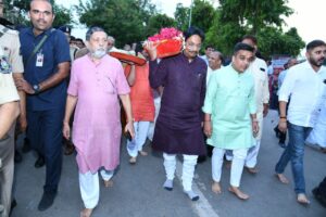 મહાઆરતી બાદ મીડિયા મિત્રોને સંબોધતા આરોગ્ય મંત્રી શ્રી ઋષિકેશ પટેલે જણાવ્યું હતુ કે, , અષાઢી બીજના પવિત્ર દિવસે સમગ્ર રાજ્યમાં સૌહાર્દપૂર્ણ વાતાવરણમાં રથયાત્રાનું આયોજન થવા જઈ રહ્યું છે ત્યારે ભગવાન જગન્નાથજીની કૃપાથી રાજ્યના ખેડૂતો પર મેઘમહેર થકી અમી વર્ષા થાય તેવી પ્રભુને પ્રાર્થના કરી છે.