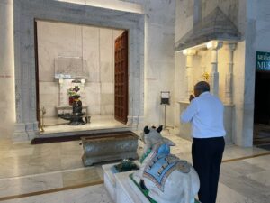 *તેમણે આ મંદિર પરિસરમાં શ્રી સીમનધર સ્વામી તથા યોગેશ્વર ભગવાન સહિત દેવ પૂજા અર્ચના પૂજ્ય દાદા ભગવાન ને ભાવ વંદન તેમજ પૂજ્ય નિરૂ માં સમાધિ દર્શન કરીને કૃપા આશિષ યાચના કરી હતી*
