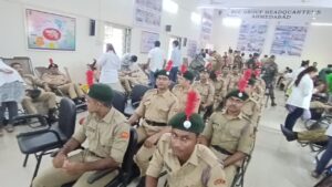 ગુજરાતમાં વિવિધ સ્થળોએ આયોજિત કુલ 500 થી વધુ કેડેટ્સે સ્વૈચ્છિક રીતે રક્તદાન કર્યું હતું. બ્રિગેડિયર નિરવ રાયજાદા. ગ્રૂપ કમાન્ડર, NCC ગ્રૂપ હેડક્વાર્ટર અમદાવાદ, NCC ગ્રૂપ હેડક્વાર્ટર લો ગાર્ડન, અમદાવાદ ખાતે યોજાયેલા બ્લડ ડોનેશન કેમ્પમાં મુખ્ય મહેમાન હતા. એનસીસી કેડેટ્સ દ્વારા બ્રિગેડીયર નિરવ રાયજાદાને ગાર્ડ ઓફ ઓનર આપવામાં આવ્યું હતું. તેમણે NCC કેડેટ્સને સંબોધિત કર્યા અને સામાજિક કાર્યોના ઉત્થાનમાં તેમના યોગદાનની પ્રશંસા કરી.