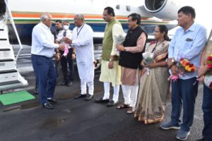 *જામનગર એરપોર્ટ ખાતે રાજ્યપાલ શ્રી આચાર્ય દેવવ્રત અને મુખ્યમંત્રીશ્રી ભુપેન્દ્રભાઈ પટેલનું ઉષ્માભર્યું સ્વાગત કરતા મહાનુભાવો*