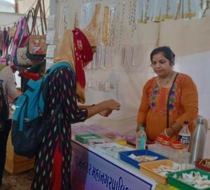 યુસીડી વિભાગ સંચાલિત સ્વસહાય જૂથના બહેનો દ્વારા આ સ્ટોલમાં હસ્તકલાની પર્સ , સાઈડ પર્સ, કટલેરીની વસ્તુઓ, સાડી, ડ્રેસ મટીરીયલ, ચિલ્ડ્રન વેર વિવિધ કોસ્મેટીક અને આયુર્વેદિક પ્રોડક્ટ જેવી વિવિધ હાથ બનાવટની વસ્તુઓ નું શ્રાવણી પર્વ દરમિયાન જામનગર મહાનગરપાલિકા દ્વારા આયોજિત લોકમેળામાં વેચાણ કરવામાં આવ્યું હતું. આ વસ્તુઓના વિવિધ વેચાણ દરમિયાન 15 દિવસમાં સ્વસહાય ના જેમકે દેવાંશી, તેજસ્વી, સ્ટાર બાલાજી, રાધિકા, અમીધારા, શ્રમજીવી, આશાપુરા ,રણછોડરાય અને પ્રકૃતિ વિવિધ સ્વસહાયના જૂથ દ્વારા હસ્તકલાની વસ્તુઓના વેચાણ અર્થે આ બહેનોએ ₹ 2,02,000-/ ( બે લાખ બે હજાર) ની રોજગારી પ્રાપ્ત કરી બહેનો આત્મનિર્ભર બની છે .