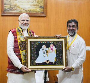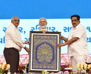 બોક્સ : ભુજ મુલાકાતે આવેલા વડાપ્રધાનશ્રીને રોગાન વર્કનો કુર્તો આપ્યો હતો ભેટ