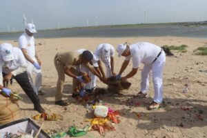 ભારતીય કોસ્ટ ગાર્ડ સ્ટેશન જખૌ દ્વારા પિંગલેશ્વર બીચ અને અન્ય દરિયાઈ વિસ્તારમાં કોસ્ટલ ક્લીનઅપ ડ્રાઈવ હાથ ધરવામાં આવી હતી.