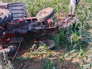 અકસ્માત સર્જાતા ટ્રેક્ટર રોડની સાઈડ ખેતરમાં પલટી માર્યું હતું ઘટનાની જાણ થતા 108 ની ટિમ પણ ઘટના સ્થળે પહોંચી હતી