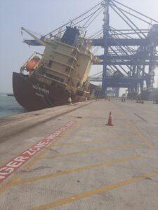 BussinessTechTravelઆંતરરાષ્ટ્રીયગુજરાતભારતસમાચાર Krunal SoniJanuary 8, 2023 *મુન્દ્રા પોર્ટ નજીકની ખાનગી જેટી પર મોટુ જહાજ નમી ગયુ* *વિદેશથી કન્ટેનર લઇ આવેલા જહાજને થયું નુકશાન* *મુન્દ્રા પોર્ટ MICT ટર્મિનલ પર બની ધટના* *કન્ટેનર લોડીગ-અનલોડીંગ કરવા સમયે જહાજ એક તરફ નમી ગયુ* *અકસ્માતને પગલે અનેક કન્ટેનર દરિયામા ગરકાવ થયા*