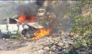 ગાંધીધામના એક વિસ્તારમાં પાર્ક કરેલી કારમાં આગ