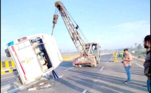 ભચાઉ દર્શન માટે આવતા ટેમ્પો ટ્રાવેલ્સ માળીયા નજીક પલ્ટી