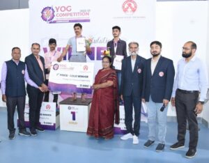 ગુજરાત રાજ્ય યોગ બોર્ડ દ્વારા બે વિભાગમાં સ્પર્ધા યોજવામાં આવી હતી , જેમાં પ્રથમ ક્રમાંક પાસોદરિયા સુભદ્ર ને શહેર મેયર બીનાબેન કોઠારીએ ગોલ્ડમેડલ પ્રમાણપત્ર અને રૂપિયા 21,000 નો ચેક એનાયત કર્યો હતો, દ્વિતીય ક્રમાંકે કડેચા સુનિલ ને શાસક પક્ષના નેતા શ્રી કુસુમબેન પંડ્યાએ સિલ્વર મેડલ સર્ટિફિકેટ – 15000 નો ચેક આપ્યો હતો, તૃતીય ક્રમાંકે વિજેતા થયેલા વારોતરીયા લખનને બ્રોન્સ મેડલ સર્ટી અને રૂપિયા 11,000 નો ચેક DEO મધુબેન ભટ્ટે આપ્યો હતો, તેમજ મહિલા વિભાગમાં પ્રથમ ક્રમાંક એ નારણકા માનસી દ્વિતીય ક્રમાંકે રોશની સિંહ અને તૃતીય ક્રમાંકે દયડા શીતલ વિજેતા થયા હતા તેઓને પણ મેયર સહિતના પદાધિકારીઓ કોર્પોરેટરોએ ગોલ્ડ મેડલ સિલ્વર મેડલ અને બ્રોન્સ મેડલ સર્ટી અને ચેક અર્પણ કર્યું હતું. આગામી સમયમાં ઝોન કક્ષાના વિજેતાઓ રાજ્ય કક્ષાની સ્પર્ધા યોજાશે તેમાં યોગ નીદર્શન કરશે.