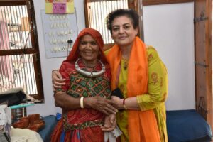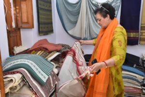 કચ્છમાં પરંપરાગત રીતે વણાટકામની કલા વિશે તેઓએ વિગતવાર માહિતી કારીગરો પાસેથી મેળવી હતી. બારીકાઈથી અને ચીવટપૂર્વક કરવામાં આવતા વણાટકામની અધ્યક્ષાશ્રીએ પ્રસંશા કરી હતી અને કારીગરોને પ્રોત્સાહન પુરૂં પાડ્યું હતું.