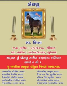 પ્રાણી પ્રત્યે માનવીનો અનોખો પ્રેમ: અશ્વનું અવસાન થતાં હિન્દૂ રીત રિવાજ મુજબ અંતિમવિધિ અને બેસણું રાખ્યું.