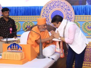 વઘાસિયા પરિવાર દ્વારા આયોજિત ભાગવત સપ્તાહમાં હાજરી આપી તેઓને બિરદાવતા શિક્ષણમંત્રી.