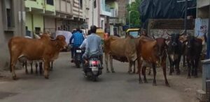 Amc ના ઢોર ત્રાસ અકુંશ વિભાગ માત્ર કાગળ પર કામ કરતું હોવાની પઁતિતિ આ રસ્તા પર ગાયો ના ઘણ જોઈ ને કહ્યી શકાય