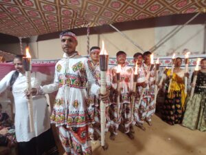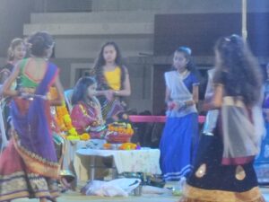 નવલી નવરાત્રીના ચોથા દિવસે અહીં યુવા દીકરા દીકરીઓ દ્વારા અદભુત આગના મશાલ રાસ તેમજ આગના વર્તુળમાં ગરબા રમવાનું ભવ્ય આયોજન કરવામાં આવ્યું હતું જેમાં તેઓ મશાલ હાથમાં લઈ તેઓ ગરબે રમ્યા હતા તો બીજી તરફ કુંવરિકા બાળાઓ દ્વારા સતત 15 મિનિટ સુધી ધૂણી ભુવા નૃત્ય તેમજ અન્ય રાસ ગરબા દ્વારા સૌને મંત્ર મુગ્ધ કર્યા હતા. જ્યારે ઘરના કાર્યમાં વ્યસ્ત રહેતી ગૃહિણી બહેનોએ પણ વિશેષ ભાગ ભજવતા ઘુમર નૃત્ય રજૂ કરવામાં આવ્યું હતું.