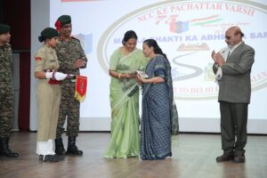 આ પ્રસંગે એનસીસી ગુજરાત, દિવ અને દમણના એડીજી મેજર જનરલ શામુંગમ જી, ને ગાર્ડ ઓફ ઓનર અપાયું હતું તેમજ પેરા સાયકલીસ્ટમાં આંતરાષ્ટ્રીય મેડલ વિજેતા ગીતા રાવ ખાસ અતિથિ વિશેષ તરીકે ઉપસ્થિત રહ્યા હતા અને આ દીકરીઓને પ્રોત્સાહિત કરતા ફ્લેગ ઇન કરાવ્યું હતું. આ ઉપરાંત કૂપવાડામાં આતંકવાદીઓ સાથે અથડામણમાં વીર ગતિ પામેલ મેજર ઋષિકેશ રામણીના માતા ગીતાબેન અને પિતા વલ્લભભાઈ રામાણી સહિત એનસીસીના અધિકારીઓ તેમજ કેડેટ્સ મોટી સંખ્યામાં ઉપસ્થિત રહ્યા હતા.