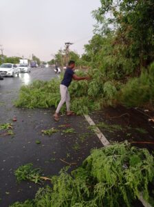 બાબરા માંથી પસાર થતો રાજકોટ ભાવનગર ઉપર વૃક્ષો ધરાશય થયા હતા.