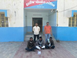(૧) વકિલસંગ ચતરસંગ ઠાકોર રહે. હારીજ જાળાવાળી ચાલી તા.હારીજ જી.પાટણ (૨) નિતિનજી દશરથજી ઠાકોર રહે. હારીજ ઝાપટપુરા તા.હારીજ જી.પાટણ (૩) રમેશભાઇ લવજીભાઇ રાવળ રહે. હારીજ ઝાપટપુરા તા.હારીજ જી.પાટણ કબ્જે કરેલ મુદામાલની વિગતઃ- (૧) રોકડ રકમ રૂ. ૧૨,૪૦૦/- તથા (૨) ગંજીપાના નંગ-પર