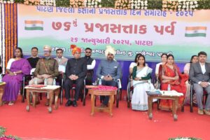 આ પ્રસંગે જિલ્લા કલેકટર અરવિંદ વિજયને પ્રજાસત્તાક પર્વનું મહત્વ સમજાવતાં ભારતનું બંધારણ વિશ્વનું સૌથી લાંબુ અને લેખિત બંધારણ હોવાનું જણાવી આજના દિવસે ધ્વજવંદન કરવાનો અવસર મળ્યો એ બદલ ગૌરવની લાગણી વ્યક્ત કરી હતી. કલેકટર એ પાટણ જિલ્લાના શહીદ વિરો અને સ્વત્રંત સેનાનીઓને યાદ કરી જણાવ્યું કે દેશની આઝાદીના ઇતિહાસમાં પાટણ જિલ્લાનું પણ બહુમૂલ્ય યોગદાન છે. પાટણની રાણીની વાવ, ડાયનાસોર પાર્ક, સિધ્ધપુર માતૃગયા તીર્થ અને તીર્થ ભૂમિ શંખેશ્વર જેવા સ્થાનકો જિલ્લાના પર્યટન સ્થળ તરીકે વિકસિત થયા છે. દેશ અને રાજ્ય સાથે પાટણ જિલ્લો પણ પ્રગતિના નવા સોપાન સર કરી રહ્યો છે. વિકસિત ભારત, વિકસિત ગુજરાત સાથે વિકસિત પાટણની નેમ સાથે જિલ્લો આગળ વધી રહ્યો છે. ખેતી, રોજગારી, આરોગ્ય, શિક્ષણ , રોડ રસ્તા જેવી માળખાગત સુવિધાઓથી સજજ બન્યો છે. જિલ્લાના ખેડૂતો પ્રાકૃતિક કૃષિ તરફ વળ્યા છે.