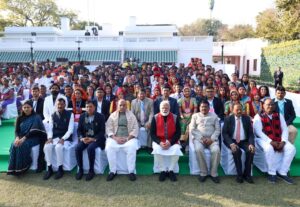 વડાપ્રધાન નરેન્દ્ર મોદીએ ‘પીએમ એટ હોમ’ કાર્યક્રમ અંતર્ગત તા.24 જાન્યુઆરી, 2025ના રોજ ગુજરાતના ટેબ્લો કલાકારો સહીત એનસીસી કેડેટ્સ, એનએસએસ સ્વયંસેવકો, આદિજાતિ મહેમાનો સાથે મુલાકાત કરીને તેમની સાથે વાતચીત કરી હતી.