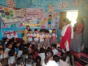 અન્નપ્રાશન સી.ડી.પી.ઓના વરદ હસ્તે અન્નપ્રાશન , બાળ દિવસની ભવ્ય ઉજવણી કરવામાં આવી હતી. જેમાં ઘટક દાળ દૂધની ખીર તેમજ છૂંદેલા ચીકુ દ્વારા અન્ન પ્રાસન કરવામાં આવ્યું હતું તેમજ અન્નપ્રાસન ના બંને લાભાર્થીની વાટકી ચમચી રૂમાલ અને ઘૂઘરો સહિતની ચીજ વસ્તુઓ આપવામાં આવી હતી.તેમજ બાલ દિવસની ઉજવણી કરવામાં આવી હતી. પ્રવૃત્તિમાં ફળનું અભિનય ગીત ફળની કીટ દ્વારા ફળ પરિચયની પ્રવૃત્તિ તેમજ બાળકના પંજા દ્વારા છાપકામની પ્રવૃત્તિ કરાવવામાં આવી હતી જેમાં મોટી સંખ્યામાં ત્રણથી છ વર્ષના વાલી ઉપસ્થિત રહ્યા હતા.તેમજ વાલી મીટીંગ કરવામાં આવી જેમાં દરેક બાળકોને નિયમિત સમય સર યુનિફોર્મ પહેરાવી આંગણવાડી કેન્દ્રમાં મોકલવા તેમજ સેટકોમ કાર્યક્રમ જોઈ લાઈક કરવા ડિજિટલ કેલેન્ડર મુજબની પ્રવૃત્તિ ઘેર વિશેની સમજ રમતગમત ભાગ ૧- ૨ ચિત્રપોથી ની પ્રવૃત્તિ ની સમજ 17 થીમ ટી.એલ.એમ .પ્રદર્શન તેમજ પોર્ટફોલિયા તેમજ પ્રી સ્કૂલ કીટ પ્રદર્શન ગોઠવવામાં આવ્યું હતું. કાર્યક્રમ અંતર્ગત દરેક વાલીએ પ્રદર્શન નિહાળ્યું હતું અને મારી વિકાસયાત્રા પણ વાલીને બતાવવામાં આવી હતી તેમજ ખૂબ જ સુંદર રીતે બાળ દિવસ તેમજ અન્ન પ્રાસન દિવસની ઉજવણી કરવામાં આવી હતી.