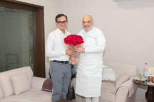 *કેન્દ્રીય ગૃહમંત્રી અમિત શાહ સાથે શુભેચ્છા મુલાકાત કરતા શહેર પ્રમુખ પ્રેરક શાહ*