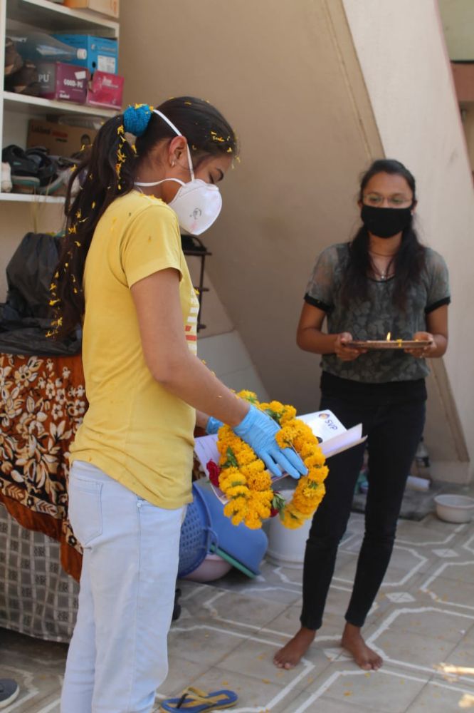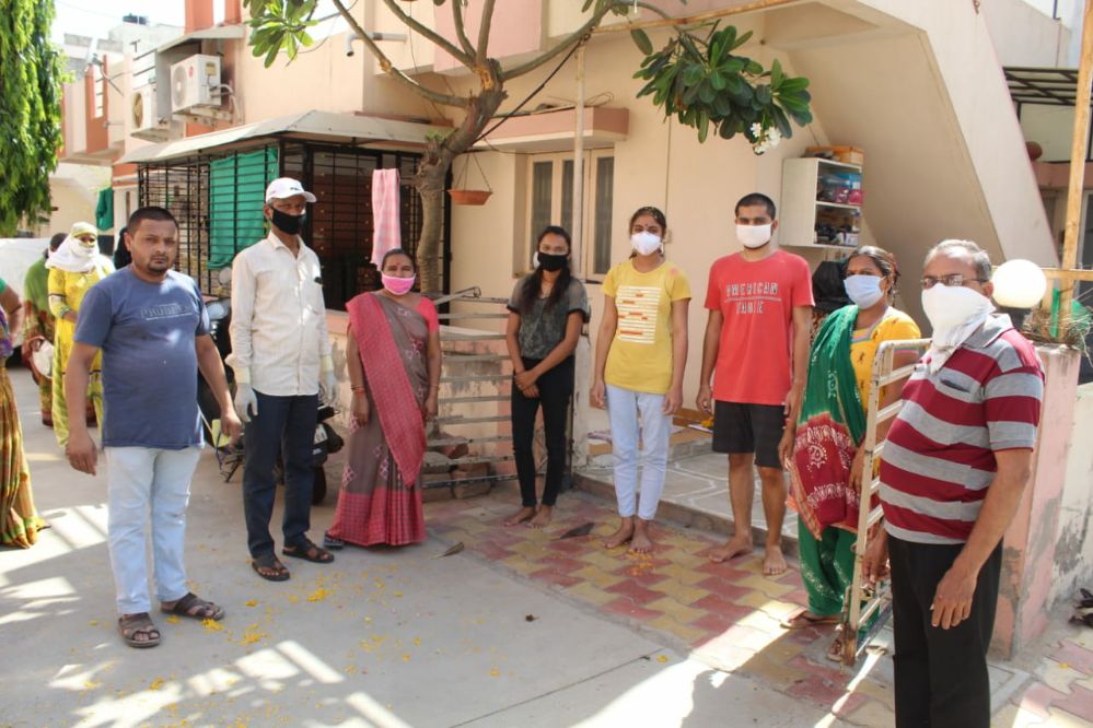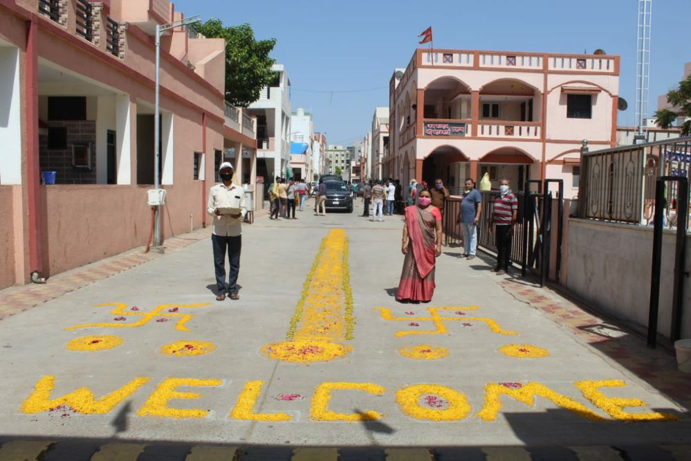 અમદાવાદના પૂર્વ વિસ્તારમાં આવેલા વસ્ત્રાલ વિસ્તારમાં એક નર્સ ને કોરોના પોઝિટિવ આવતા જાતે જ svp હોસ્પિટલમાં દાખલ થઈને કોરોના ને હરાવીને પાછા આવતા ક્રિષ્ના પાર્ક સોસાયટીના રહીશોએ તેમનું સોશિયલ ડિસ્ટન્સ રાખીને સ્વાગત કર્યું હતું અત્રે મહત્વપૂર્ણ બાબત એ છે કે કોરોના ને માત આપીને આવતા આ દર્દીને લોકોએ તેમના મસ્તક પર તિલક પણ સોશિયલ ડિસ્ટનસિંગ રાખીને કર્યો હતો…