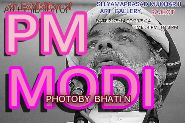 ગુજરાતના સપુત નરેન્દ્ર મોદી એ ગુજરાતનું નામ રોશન કરેલ છે,ગુજરાતના સુપ્રસિદ્ધ તસવીરકાર ભાટી એન દ્રારા મોદીજી ની હજારો તસવીરો લીધી છે તેમાંથી ચુનદા 110 ફોટા નું ભવ્યતાતી ભવ્ય “પી એમ મોદી” ફોટો પ્રદર્શન રાજકોટની શ્યામાપ્રશાદ આર્ટ ગેલેરી રેસકોષ ખાતે તા/22/5/14 થી 23/5/14 સુધી સુધી યોજાયું હતું તો ફસબુકના મિત્રો ખાસ મોદીજીની અલભ્ય તસવીરો નિહાળવાનો મોકો છે,,,,,,,,,,,,,ભાટી એન ,