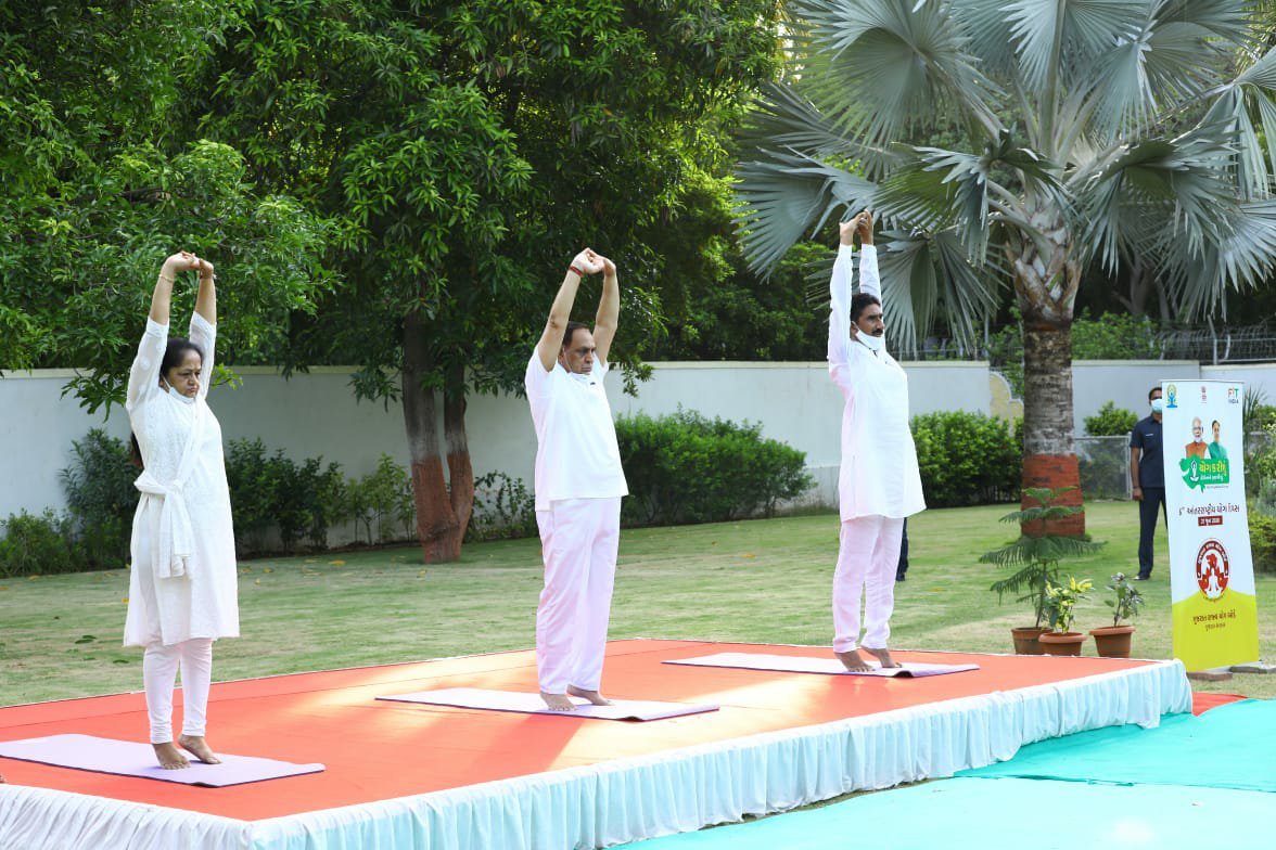 *મુખ્યમંત્રીશ્રી એ ‘યોગ કરીશું કોરોના ને હરાવિશું’ મંત્ર સાથે રાજ્યના સૌ નાગરિકોને કોરોના સામે યોગાસન વ્યાયામ ના આયામ થી રોગ પ્રતિકારક શકિત વધારવા કરેલા આહ્વાન ને પગલે આજે આંતરરાષ્ટ્રીય યોગ દિવસ અવસરે રાજ્યભરમાં યોગ એટ હોમ યોગ વિથ ફેમીલી થીમ પર અનેક પરિવારોએ સ્વયંભૂ યોગ પ્રાણાયામ પોતાને ઘરે કર્યા હતા*.
